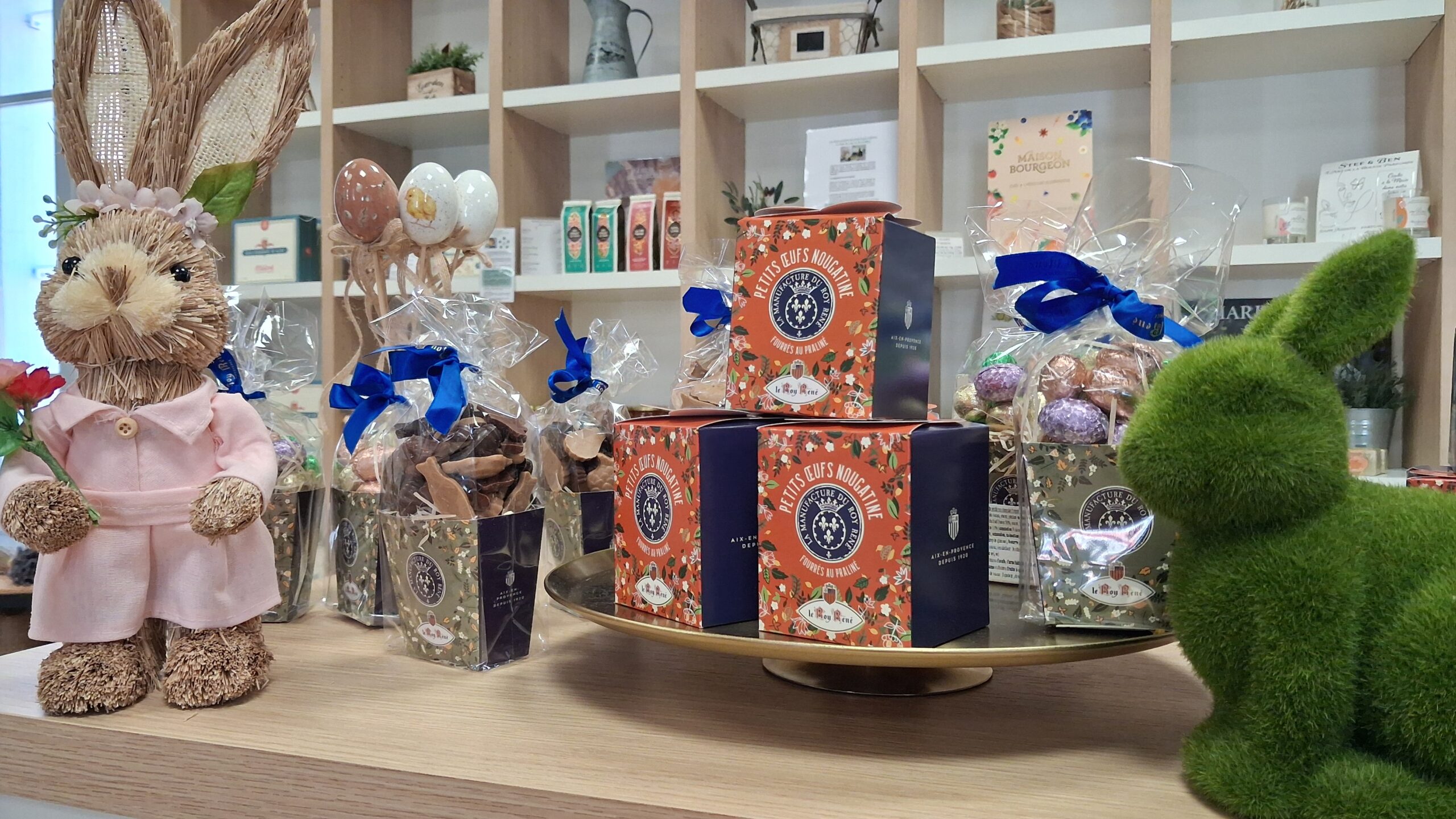 Encontrarás turrones y calissons de la Confiserie Maurel, surtidos y cremas para untar de la Confitería del Rey Renégalletas de la empresa familiar le Père Gatounet como navettes, croquants y galletas de mantequilla con flor de sal de Camargue.